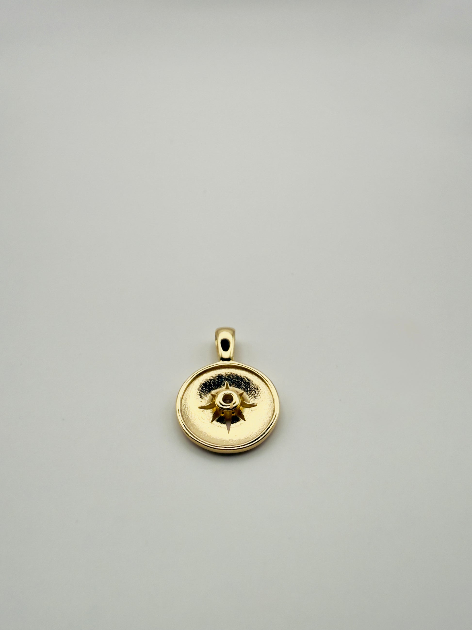 A minimalist compass pendant symbolizing direction and purpose. Crafted in 18K gold-filled metal with a textured finish. Timeless, refined, and made to last.